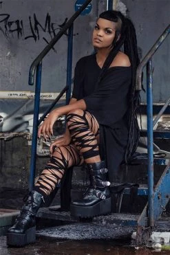 It’s a dark paradise! Getting down and spooky with the ‘Celestial Bodies’ statement top; an oversized body made of the softest stretch-jersey – that flows with movement perfectly! Complete with extra wide neck, slightly cropped body with wide sleeves and exaggerated hanky hems! Perfect for club visitations, infernal affairs and leaving the crypt at dusk/dawn.